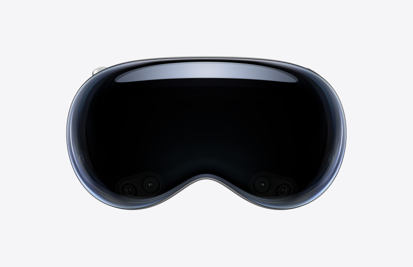 صورة للجانب الخارجي من Apple Vision Pro تبيّن مصفوفة الكاميرات والمستشعرات