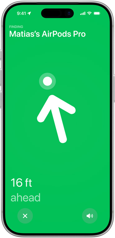 Charging case. Next-generation Ultra Wideband technology increases the distance of Precision Finding by 1.5x,12 so you don’t lose track of your AirPods.
