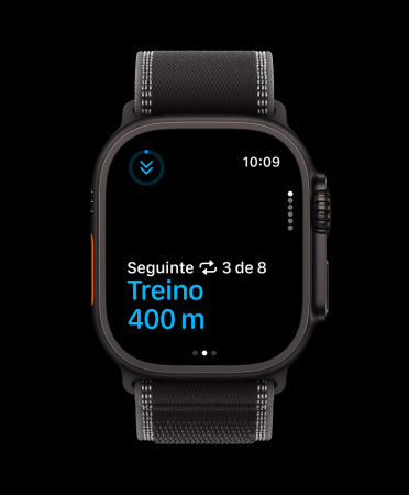 Com o Ultra 3 você nunca perde o ritmo. O Apple Music pode recomendar a melhor playlist com base no seu treino e nas músicas que você gosta7. Ou só escolha uma das sugestões de playlists ou podcasts.