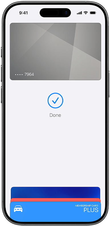 Az Apple Pay az érintésmentes fizetést támogató országokban és régiókban használható. Érdeklődj a bankodnál, és kérj tájékoztatást a külföldi használattal járó esetleges költségekről.