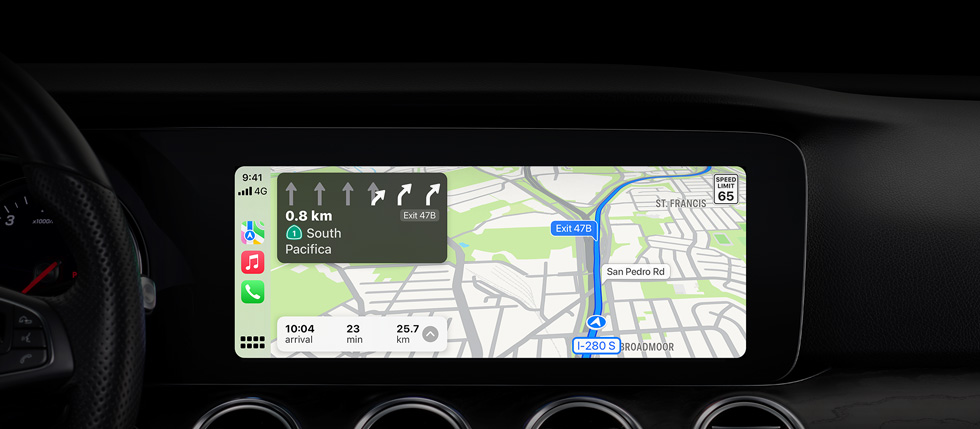CarPlay brings the power and simplicity of Maps behind the wheel. It can make intelligent suggestions based on data you already store on your device, like addresses from your email, text messages, contacts and calendars. And with a detailed map, turn‑by‑turn spoken directions and immersive 3D experiences, it’s easier than ever to get where you need to go.