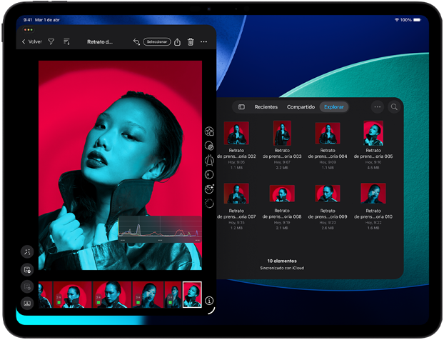 Captura y edita imágenes con HDR Inteligente y videos ProRes hasta 4K. Abre y manipula escenas 3D de gran tamaño. Y ejecuta modelos de IA más complejos, todo con apps profesionales.