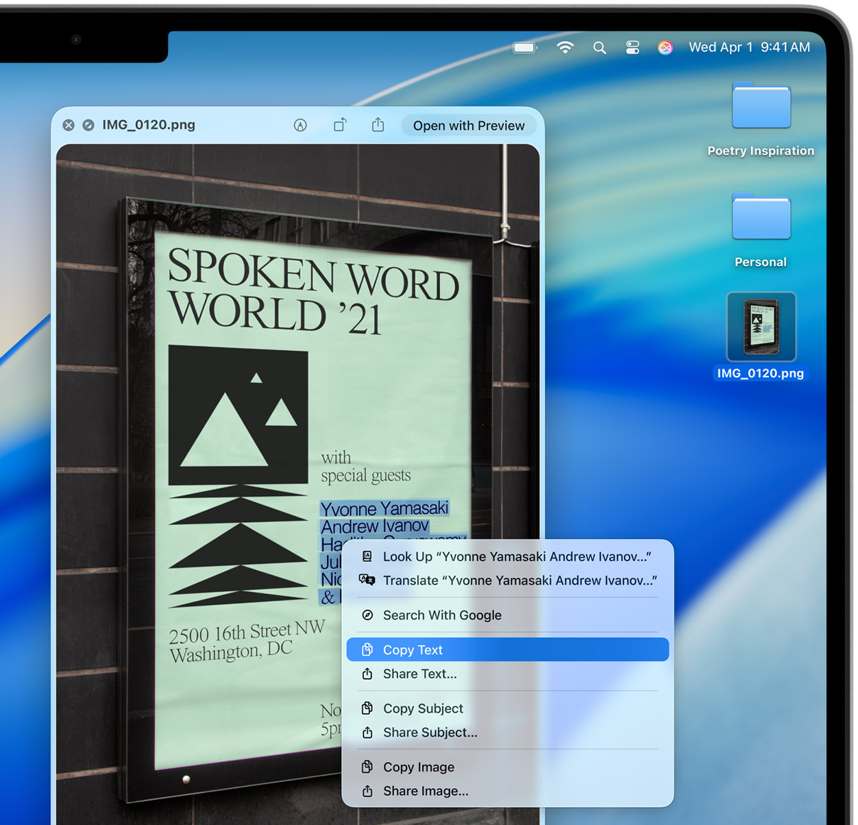 Quickly learn more about landmarks, works of art, breeds of dogs, and more with only a photo or an image you find online. And easily lift the subject of an image from Safari, remove its background, and paste it into Messages, Notes, or other apps.